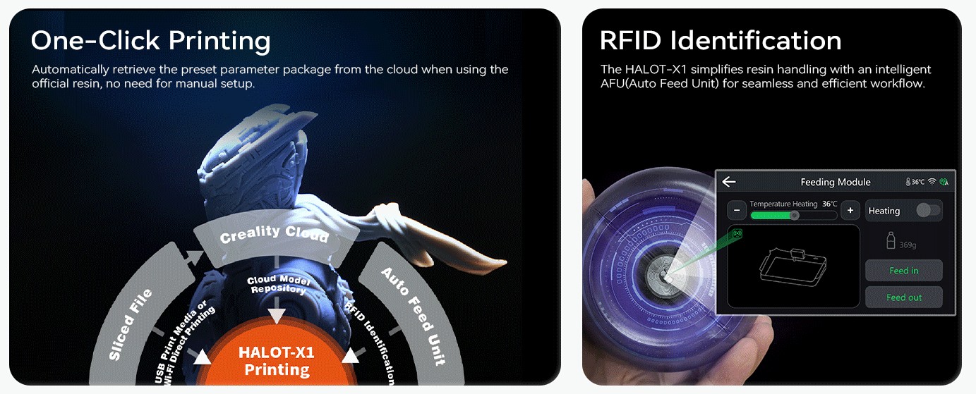 The Creality HALOT-X1 is a high-performance resin 3D printer designed for makers who demand precision, reliability, and ease of use. Equipped with a proprietary light source system, intelligent features, and a powerful processor, it offers seamless printing and stunning detail right out of the box.
